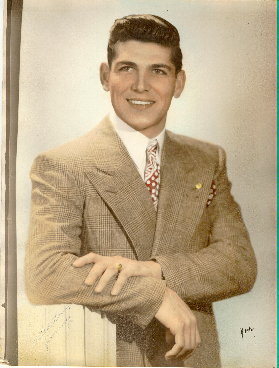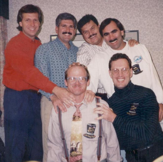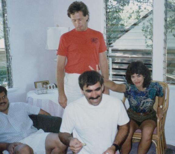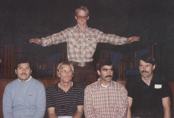 Photo Gallery(Top row, left to right): KJAK's charter members; Junior with Polynesian tattoo which translates: "We should have had Japanese food rather than hamburgers"; JA juggling; DK the DJ; Hawaiians from Nashville??; Grandpa. (Second row, left to right): Maggi and Aunty Fluff; Squash; PJ's father; Melissa; Taylor; Mr. Orona. (Third row, left to right): Sweet Daisy; DK the DJ and family; JA and family; P. Vernon and FiFi; DK the DJ with a light snack; Hawaii Five-0 sunset. (Fourth row, left to right): COD 1984 3A LA City Champions; Fluffy on Glacier Point; Grandpa blessing Junior, Gas Crawford, DK the DJ, and Jim B.; P. Vernon, Roger Dodger, Pastor, DK the DJ, and Grandpa at Pastor's wedding (May 8, 1982); Roger Dodger's bachelor party dinner (1983); Big Joe maintaining KJAK Radio's vehicle fleet. (Fifth row, left to right): New Year's Eve (Guys); New Year's Eve (Gals); High Desert Classic (late 1980's); KJAK's yearly luau; Fluffy and Grandpa with his banjos; Grandpa with Homer Treeloggin. (Sixth row, left to right): Junior, P. Vernon, Fluffy and DK the DJ; Roger Dodger's wedding (1983); DK the DJ letting loose on the organ (1977); Grandpa's 40th birthday; Romeo looking over Fluffy's shoulder; DK the DJ tackles "Yogurts and Apple." (Seventh row, left to right): DK, P. Vernon and the Pastor discover a dump site (July 2003); the Pastor doesn't know which way is up in juggling (July 2003); Kristen, Greg, and Dee Dee react at being able to order anything from the menu (July 2003); the majestic Aloha Tower (July 2003); P. Vernon and Greg imitate two suave gents (July 2003); Kim, DK, and Fluffy hit the hard stuff (Passion Guava Juice) (July 2003). KJAK Radio 939 FM's photo gallery will include photos of KJAK's members, friends and fans, complete with a brief history of each photo. If you have a photo you wish to have considered for posting, please send it to us.